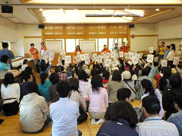 地元の民宿を借りて着替えを済ませ、村長さんや農家の方々と共に開校式。
