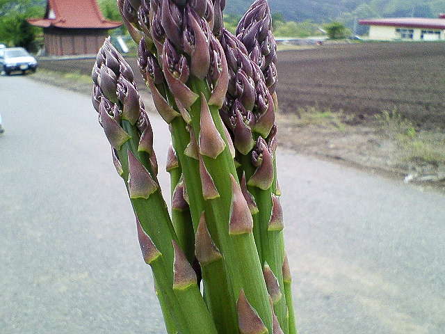 その後は農家の方に用意していただいた地元の米のおにぎりをほおばり、あったかい豚汁で体を癒し、しばし休憩した後、アスパラガスの収穫体験へ。