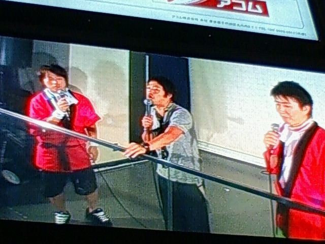 ゆるきゃら好きな人にはおなじみの、トリッピーと、ゲゲゲの鬼太郎、そしてビビビのねずみ男の着ぐるみたち、あとは司会のお二人。