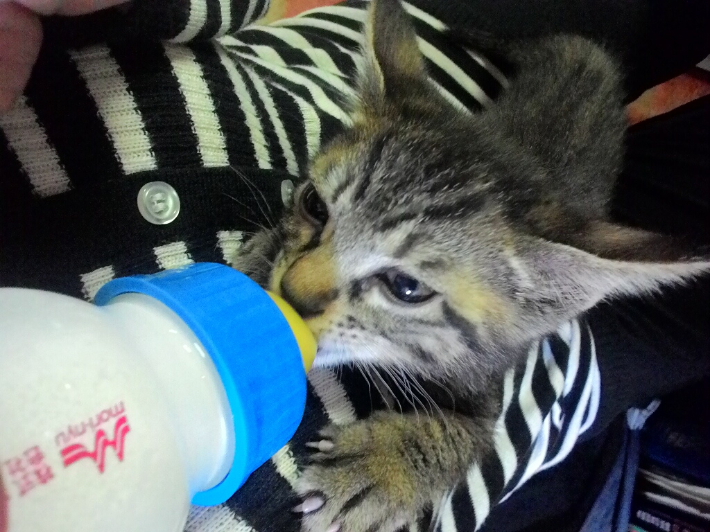 哺乳瓶見ると、「みやぁ~~~~!!!!」とね、興奮状態に。