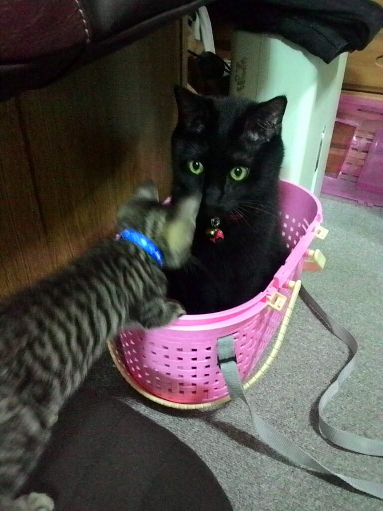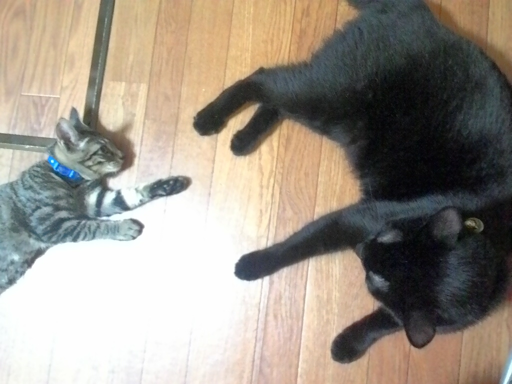 我が家の愛猫じょにーも、何とか微妙な距離感で相手してくれてるし。