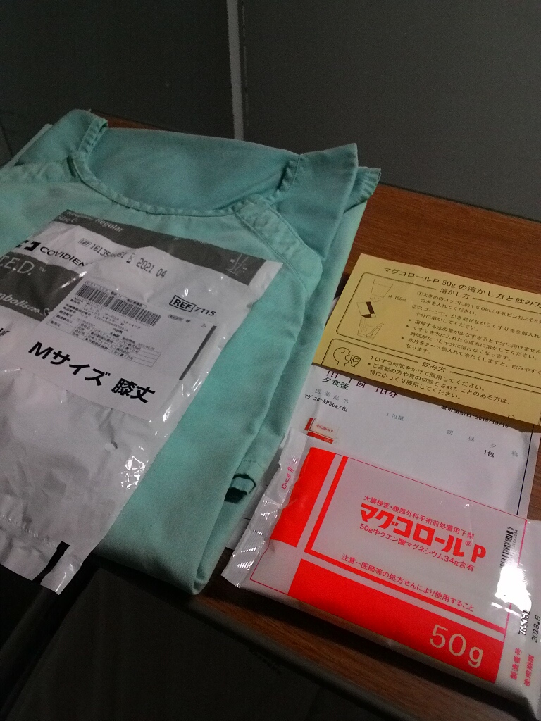 そして入浴を終え、明日の手術にむけて色々受け取りました。